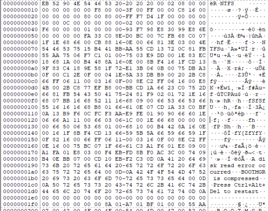FAT 파일시스템과 마찬가지로, NTFS 파티션의 가장 앞부분에는 VBR이 존재합니다.