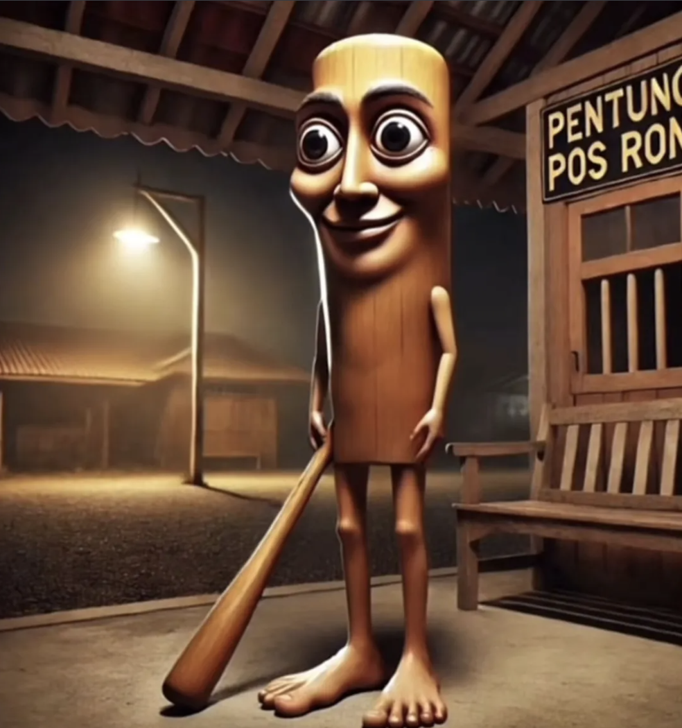 야구 방망이를 든 갈색 나무토막. 기묘한 얼굴과 '사후르 시간에 나타난다'는 설정으로 무서움을 자아내는 최상위 인기 캐릭터입니다. 인도네시아에서 유래했습니다.